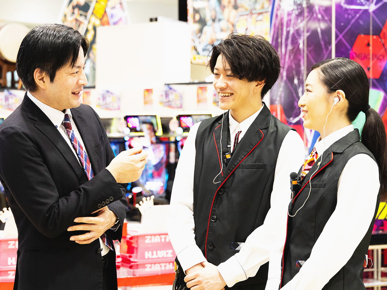 吉田アニメなどのサブカルチャーが好きで、この業界ではそうした作品を使った台もあることから興味を持ちました。それに人事や会社の幹部の方々など、出会う方たちの人柄が温かく、私自身に興味を持ってくれているのを感じたので、ここなら楽しく働けそうだと思ったんです。もちろん、最初は仕事を覚えるのが大変でした。私は考えてから実行に移すのに少し時間がかかるタイプなので。遊び方や台の仕組みが分からないうちは気おくれすることも多かったです。